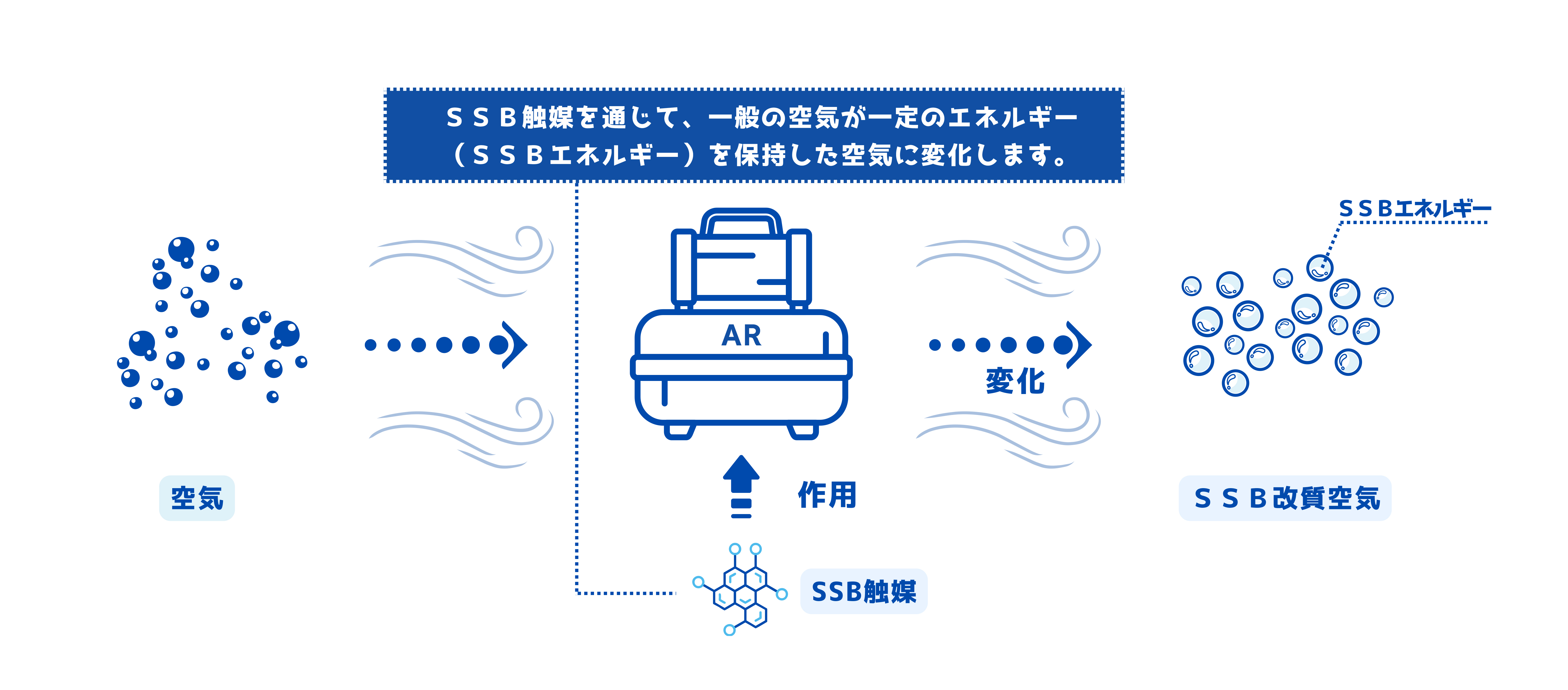 このSSB触媒を通じて、一般の空気が、一定のエネルギー (SSBエネルギー)を保持した空気に変化します。